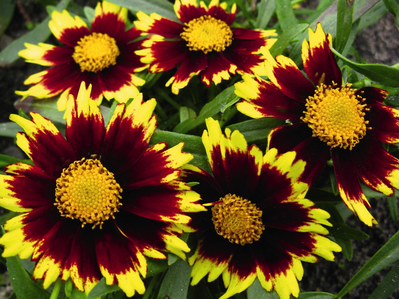 This is the most widely grown annual coreopsis. Easy to raise from seeds sown where they are to bloom, it is often used in flower meadows because it comes into flower so rapidly. Blossoms are usually bicolor (yellow and red), but there is a whole range of colors and flower forms.