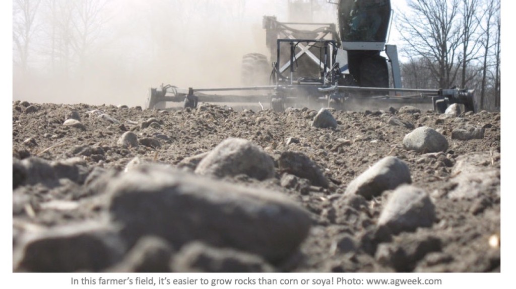 These rocks re associated with glacial deposits: soils pushed to the spot thousands of years ago by glaciers mixing sand, clay … and stones of all shapes and sizes. The soil is full of them, often to great depths, and they keep migrating upwards over time … but why?