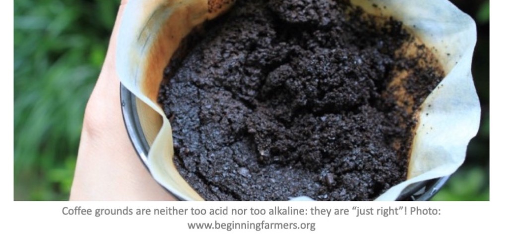 On their own, coffee grounds are only slightly acidic, with a pH of 6.2 to 6.8, depending on their source. And a pH of 6.0 to 6.9 is considered ideal for garden soils. So they’re smack dab perfect! What more could you ask for?