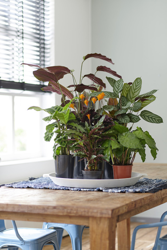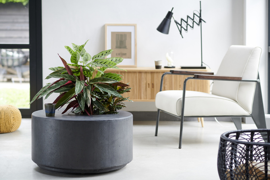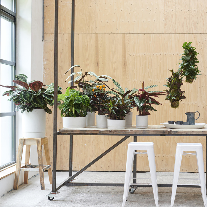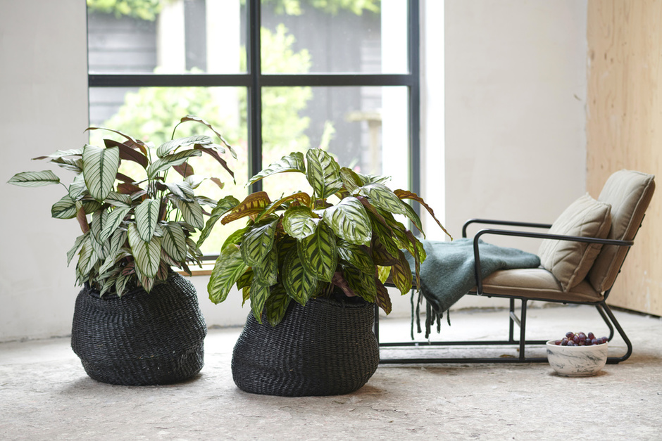Calathea’s air-purifying effect makes it a great plant for both the office and the home, especially now that the central heating is on again. To make sure the attractive foliage is displayed clearly, don’t place the plants too close together. The styling can be trendy and sleek—that shows off the leaves particularly well.