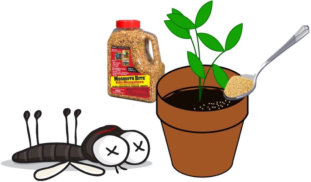 Of course, home gardeners have been grinding up Mosquito Dunks® and using them as a fungus gnat control for years, but that was technically illegal. (When you use a pesticide for a purpose other than that for which it is intended, you’re breaking the law.) But there is now a product that is legally approved for treating fungus gnats: Mosquito Bits®. Yes, the same as good old Mosquito Dunks®, but in the form of granules rather than mini-donuts.