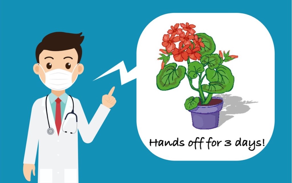 If you have a plant delivered to your home, again, wash the pot with soapy water, then thoroughly wash your hands. And again, don’t touch the plant for three days. Or instead, leave the plant in its packaging for three days before opening it.