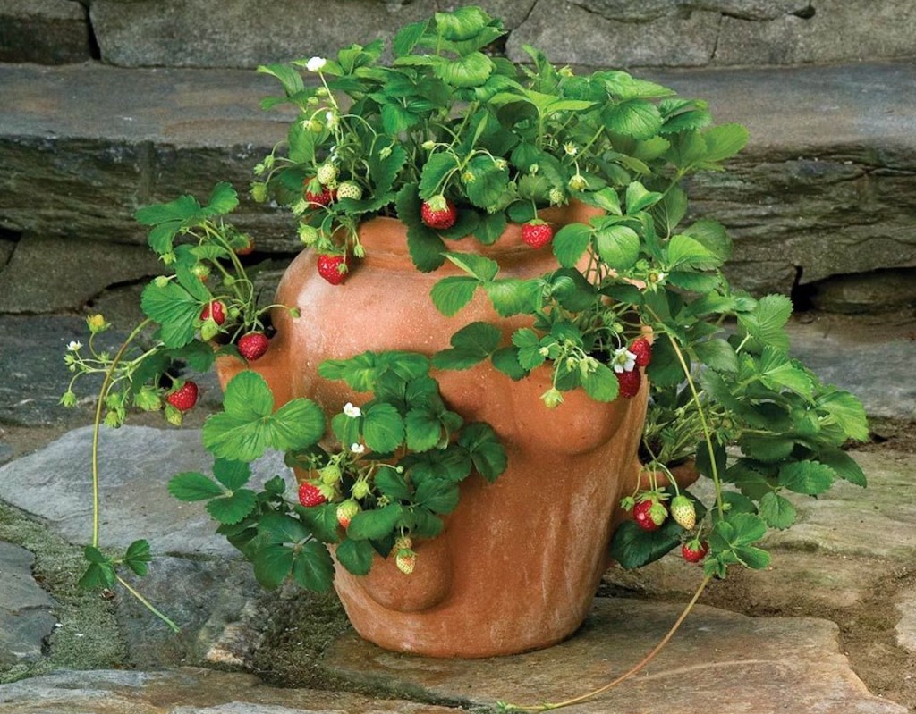 Which pot material you choose depends on your tastes and your budget. Do make sure, however, that whatever strawberry jar you choose has a drainage hole at the bottom.