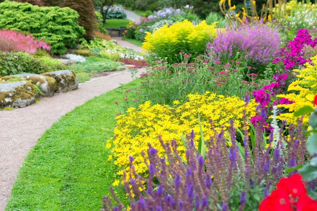 - Use white or gray accents to tone things down if you’re worried that a combination is too garish. Simply separate the two “offensive” colors with plants that have white flowers or gray or silver foliage, and the contrast will be softened.