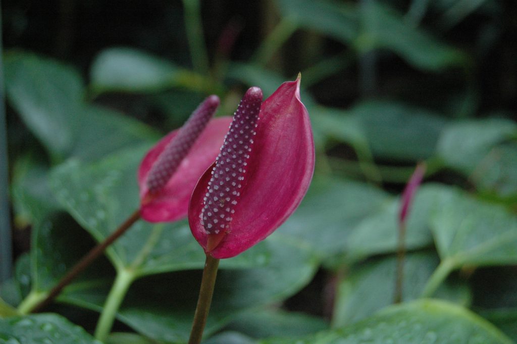 The two most commonly used species for creating hybrids are Anthurium andreanum, which is native to Colombia and Ecuador, and A. scherzerianum, native to Costa Rica. Both plants are epiphytes and grow on tree trunks without parasitizing them.