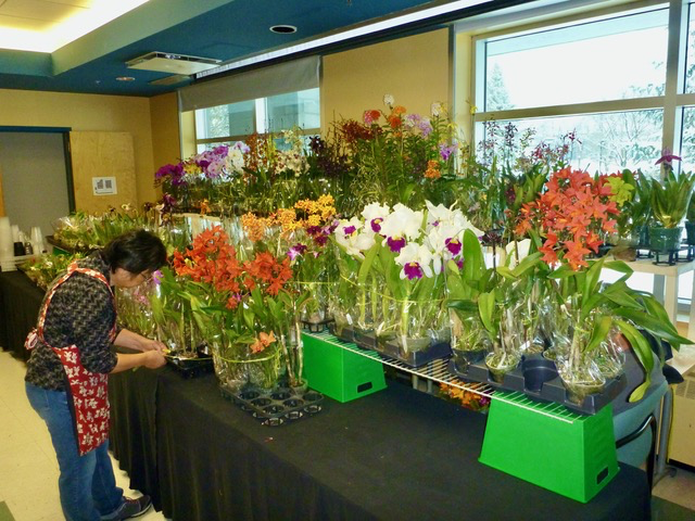 The trade section of each show offers a variety of orchids that are typically hard to find in garden centers. Here, this excellent Ontario supplier is finishing setting up its impressive display. Photo: Robert Charpentier