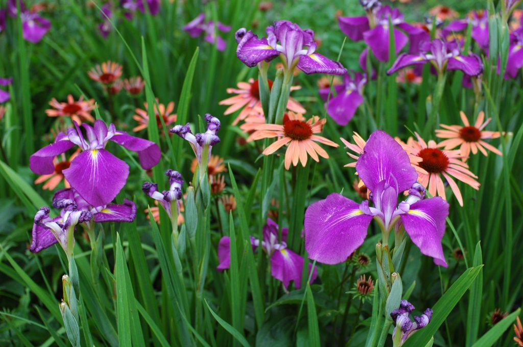 If you decide that pink and mauve are the colors of your choice, then these should dominate! Adding a touch of pale yellow, like that of Coreopsis ‘Moonbeam’ (Coreopsis verticillata ‘Moonbeam’), is perfectly acceptable, provided it serves to enhance a mauve cornflower. However, the dominant colors should be mauve cornflowers, pink coneflowers, and purple speedwells.
